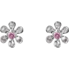 Silver Bar Pink Anemone Crystal Earrings
