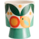 Keraaminen suojaruukku – graafinen katseenvangitsija. Birdie suojaruukku hurmaa raikkaalla, graafisella kuviollaan, jossa vihreän, oranssin, keltaisen ja valkoisen sävyt luovat iloisen ja elävän ilmeen. Värikäs design tuo piristystä niin olohuoneeseen, keittiöön kuin työpisteellekin. Selkeä, sylinterimäinen muoto tekee ruukusta monikäyttöisen ja helposti yhdisteltävän erilaisten sisustustyylien kanssa. Se korostaa kasvin kauneutta ja toimii myös näyttävänä koriste-esineenä sellaisenaan.