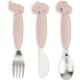Det söta besticket har mjuka, halkfria handtag i silikon och kommer snart att bli ett favoritset. Storleken på barnbesticksetet är perfekt för ett självständigt barn som lär sig att äta själv.