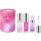 Låt dina läppar tala med essence hydra kiss LIP OIL trio 01 Lip's Choice Awards läppolja! Denna livfulla trio innehåller den populära och bästsäljande nyansen #01 och två exklusiva nyanser som valts ut av vårt community. Den silkeslena, icke-klibbiga formulan glider på läpparna och ger en underbart glansig finish med en strålande nyans. Oavsett om du vill ha en fräsch look på dagen eller en gnutta glans på kvällen, ger dessa läppoljor dina läppar en mjuk och vårdande behandling. Den perfekta kombinationen av komfort och stil - direkt från hemmet till din sminkväska!