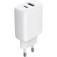 Nopea matkalaturi kannettavalle tietokoneelle, puhelimelle ja tabletille. Tässä uudessa 30 W kannettavan, tabletin ja puhelimen laturissa on PD/PPS-pikalataustekniikka. USB-PD on pikalataustekniikkaa, jota käyttävät pääasiassa Apple, mutta myös Google pixel ja jotkut Samsungit. PPS on nopea lataus, jota vaaditaan uudemmissa Samsung-malleissa. Tekniset tiedot Portti: USB-C + USB-A Väri: Valkoinen, Musta Tulo: 100-240V~50-60Hz 0.8A Suurin teho: 30W Lähtö: USB-C: 5V/3A 9V/3A 12V/2.5A 15V/2A , 20V/1.5A(30W max) (PPS) 3.3V ~ 11V/3A tai 3.3-16/2A (max 30w) Lähtö USB-A: 5V/3A,9V/2A,12V/1.5A(18W max) USB- A+USB-C: 5V/3.6A(18W) Koko: 43.5x49x26 mm 30W teho Nopea lataus Valmistettu 100% kierrätetystä muovista