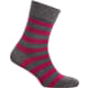 Merinovillanilkkasukan suussa kiristämätön resori. Merinovilla on hengittävä ja lämmittävä luonnonkuitu, mikä siirtää kosteuden pois iholta. Sukassa saumaton kärki. Pirteä raita kuosi