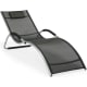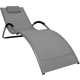 Solstol BRIGO 62x180xH26/66cm. Textilsitsen på solstolen är välventilerad, torkar snabbt och är lätt att rengöra. Stolens stomme är gjord av aluminium och avslutad med grå pulverfärg. Armstöden har svarta polyuretanöverdrag. Sitsens bredd är 54 cm, höjden på sitsen i den lägsta delen är 26 cm, höjden på armstödet från marken är 42 cm. Viktgräns 120 kg. Solstolar är stapelbara. Produkten är hållbar i varierande väderförhållanden och lätt att underhålla.