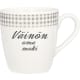 Guld keramisk namnmugg med ditt namn. Muggen har ett grårutigt mönster och svart namntext. Styrka 2 dl. Vitro porslinsprodukt. Tål maskintvätt, ugn, mikrovågsugn och frys.