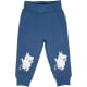 En mysig Mumin babybyxa i skön sweatshirtskvalitet med oborstad insida. Med ribbad mudd i bensluten och ribbad resårmidja och roliga rubbertryck på knäna.