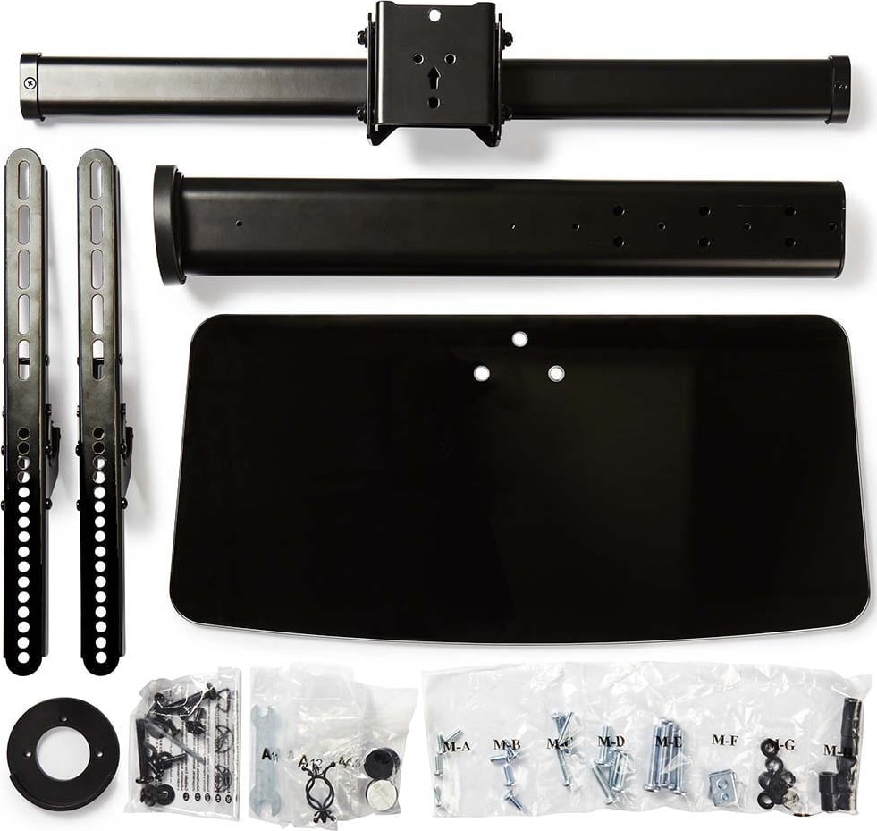 • Keskikokoinen teline - sopii useimmille 32-65-tuumaisille TV-näytöille • VESA-yhteensopivuus: 200x100, 200x200, 300x200, 300x300, 400x200, 400x300, 400x400, 600x400 • Vahvat ja kestävät osat - kantavuus enintään 45 kg painaville televisioille • Karkaistusta lasista valmistettu alusta - kestävä ja luotettava tuki • Korkeussäädettävä VESA-levy - varmista oikea TV:n korkeus eri tilanteissa • Kallistustoiminto - 15 asteen kallistusalue takaa parhaan katselukulman • Kiertotoiminto - kierrä televisiota vasemmalta oikealle 180 asteen alueella • Tyylikäs musta viimeistely - upea ulkoasu ja tuntuma kotiin tai toimistoon • Sisältää kaapelinhallinnan, jonka avulla johdot ovat järjestyksessä TV:n takana • Nopea ja helppo asennus - alle 20 minuuttia