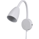 Valkoinen seinävalaisin kääntyvällä varrella, materiaali metallia. GU10 lampunpidin ja 170 cm johto välikytkimellä ja seinäpistokkeella