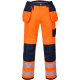 Genomtänkt designade HiVis arbetsbyxor, hängfickor, knäskyddsfickor öppna uppifrån, tvåvägs lårficka, stängbar telefon, nyckel, verktygsficka.