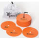 20 medium koon pyöreää kumista merkkilevyä. Mukana kantopussi.