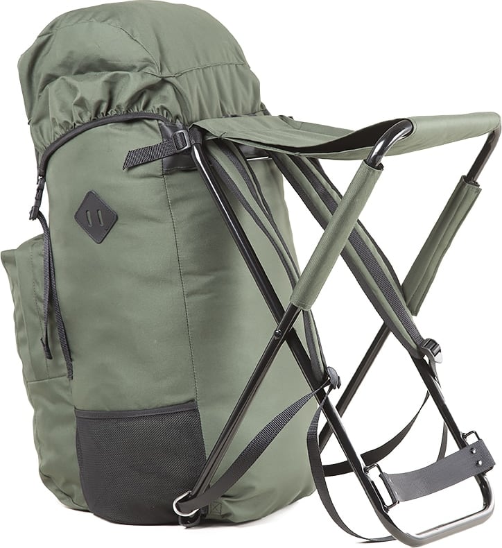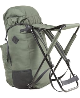 Istuinrepussa on suuri reppuosa, jossa on helppo kuljettaa hieman pidemmänkin metsästysretken tarvikkeet. Lisäksi reppuosassa on yksi etutasku sekä verkkotaskut repun molemmilla sivuilla. Myös repun läpässä on vetoketjullinen pikkutasku.