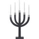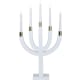 5-grenad elektrisk ljusstake i trä med vackra metalldekorationer. Ljusstakens höjd är 67 cm, bredd 35 cm och djup 8 cm. Ljuset har utbytbara glödlampor med E10-sockel. Nätsladden med strömbrytare är 180 cm lång.