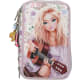TOPModel COWGIRL -penaalin kolme vetoketjuin suljettavaa kerrosta sulkee sisälleen kaiken mitä piirtämiseen ja kirjoittamiseen tarvitset: puuvärikynät ja tussit, 18 kappaletta kutakin, 2 lyijykynää, viivoittimen, sakset, liiman, pyyhekumin ja teroittimen! Vetoketjussa koristeena riipus cowboysaappaalla, -hatulla ja tähdellä. Materiaali 100 % PES.