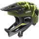 Uvex React JR. Fullface är en MTB-hjälm för barn som passar för stigar, pumptracks och skateparker. In-mould-konstruktionen kombinerar en EPS-innerdel och ett polykarbonatskal till ett lätt men slagtåligt paket, medan djupare skydd vid bakhuvudet och tinningarna ger extra skydd.